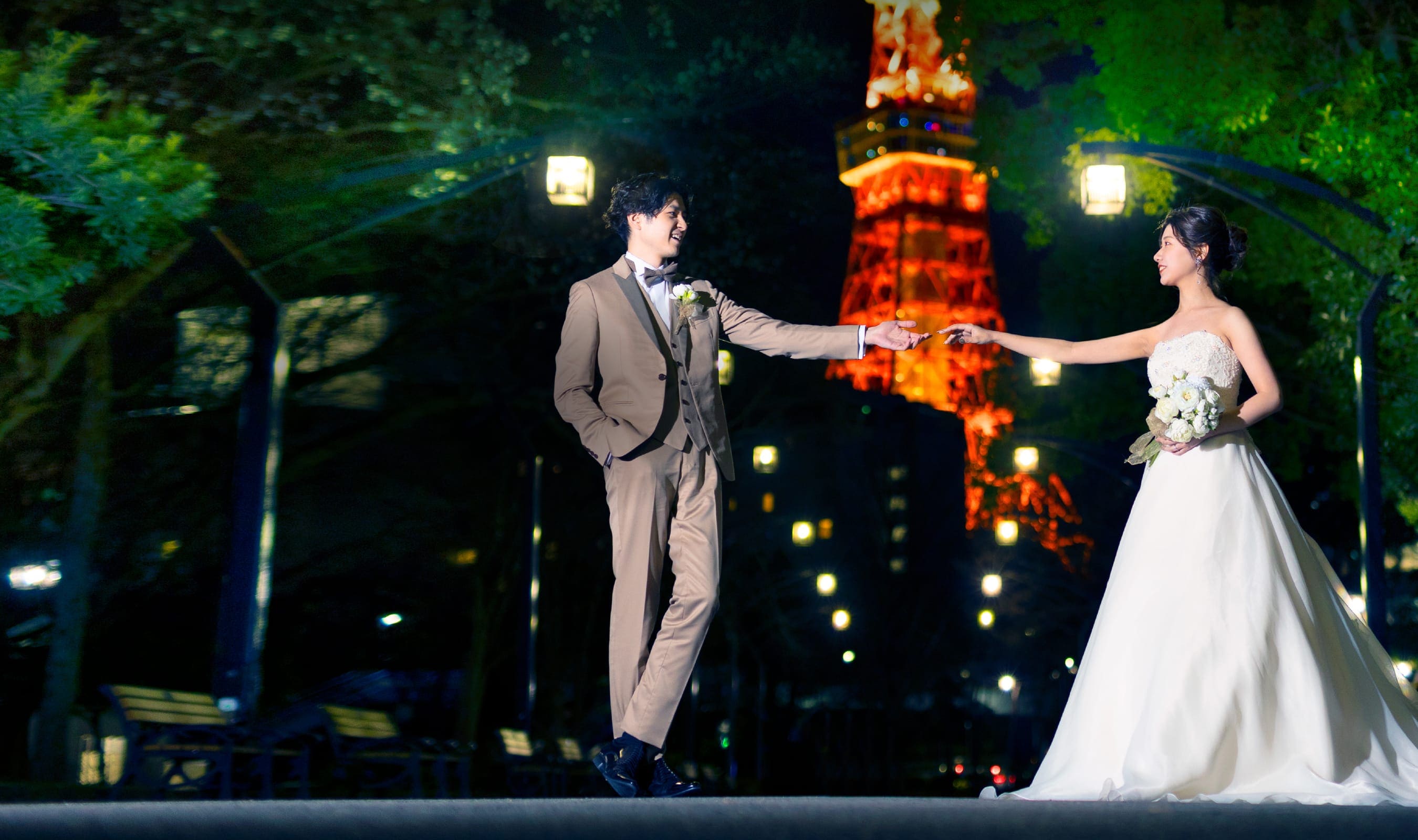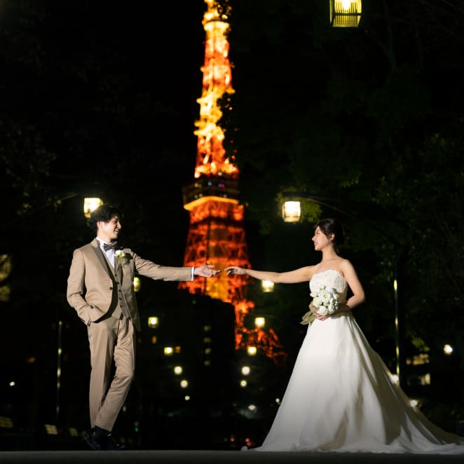 東京の紅く美しい夜景はおふたりの一瞬を