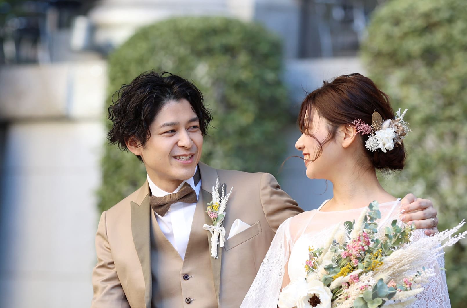 見つめ合うおふたりの一番幸せな歩みを